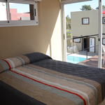 La planta alta también con aire acondicionado frio-calor cuenta con dos dormitorios, uno con Sommier de dos plazas y balcón deck con juego de mesa, sillas y sombrilla, otro dormitorio con dos camas individuales de una plaza y baño completo.