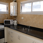 La planta baja esta compuesta por living comedor con aire acondicionado frio-calor, TV Led, DVD y DirecTV HD, toilette, cocina completa equipada con heladera, microondas, horno a gas, pava eléctrica y toda la vajilla y elementos necesarios.
